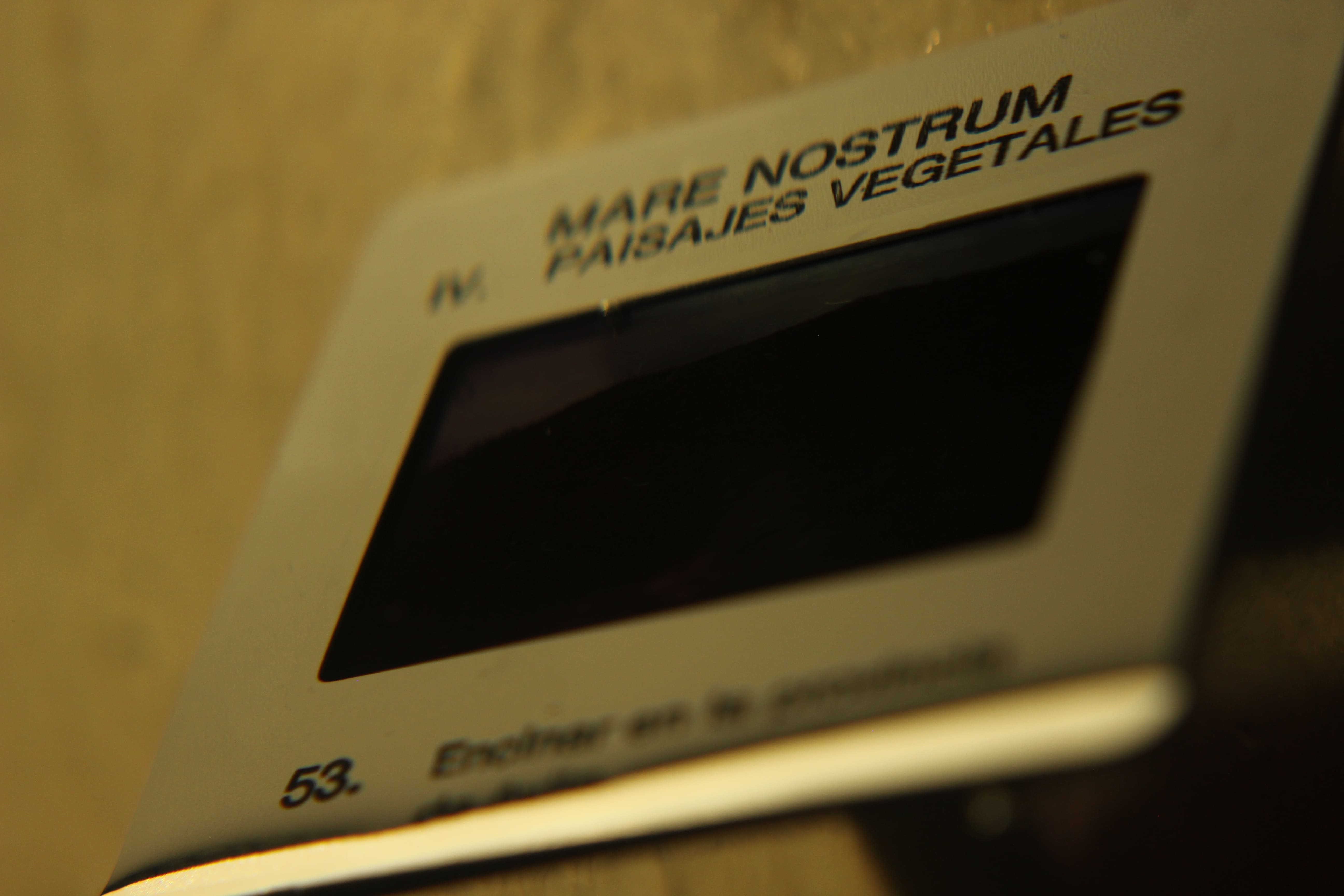 La primera foto es una diapositiva proyectada sobre una alfombrilla de [game:hou]. Saqué cantidad de fotos de esta y la camiseta, un objeto muy de estar por ahí. Sabes.