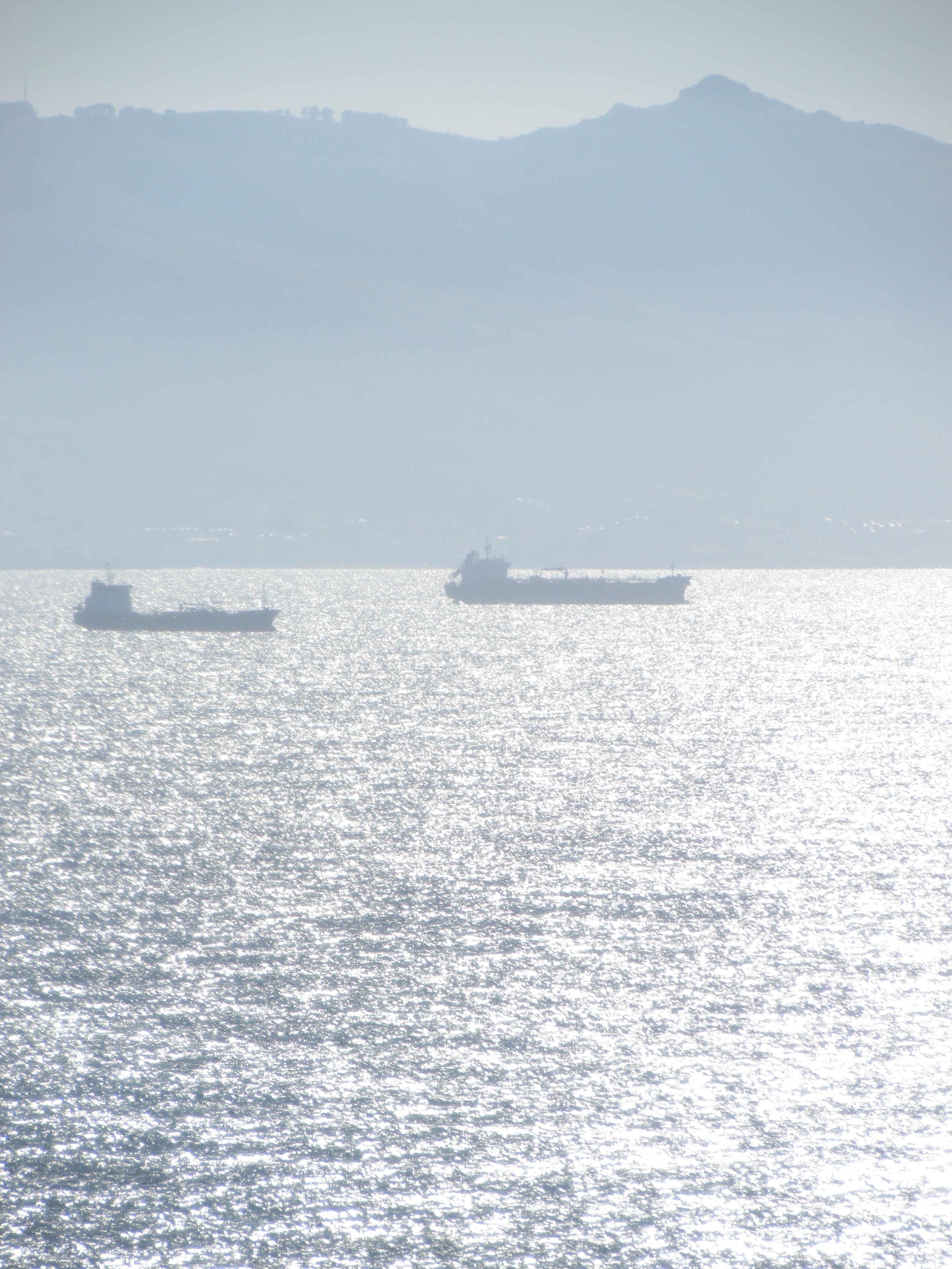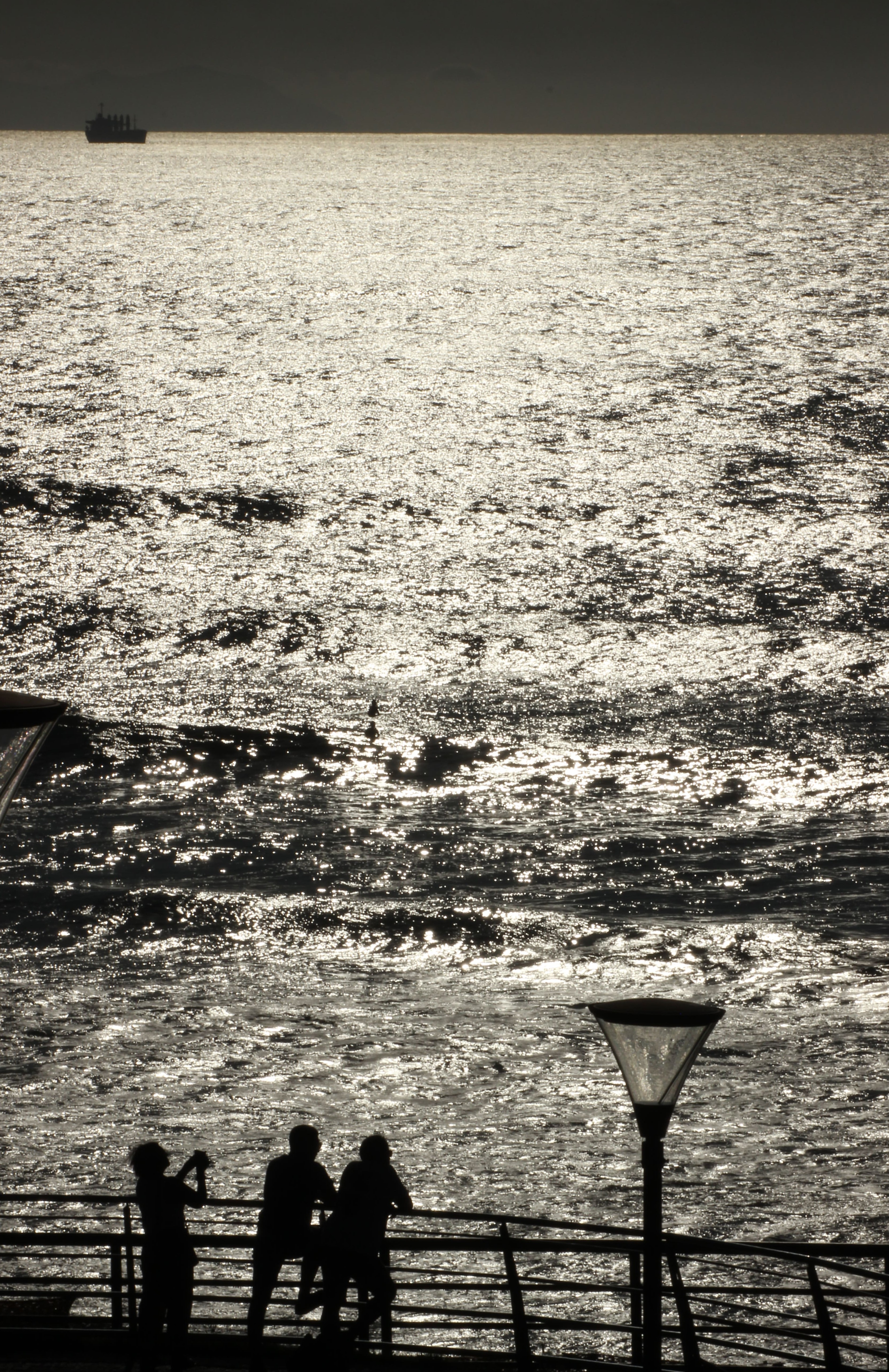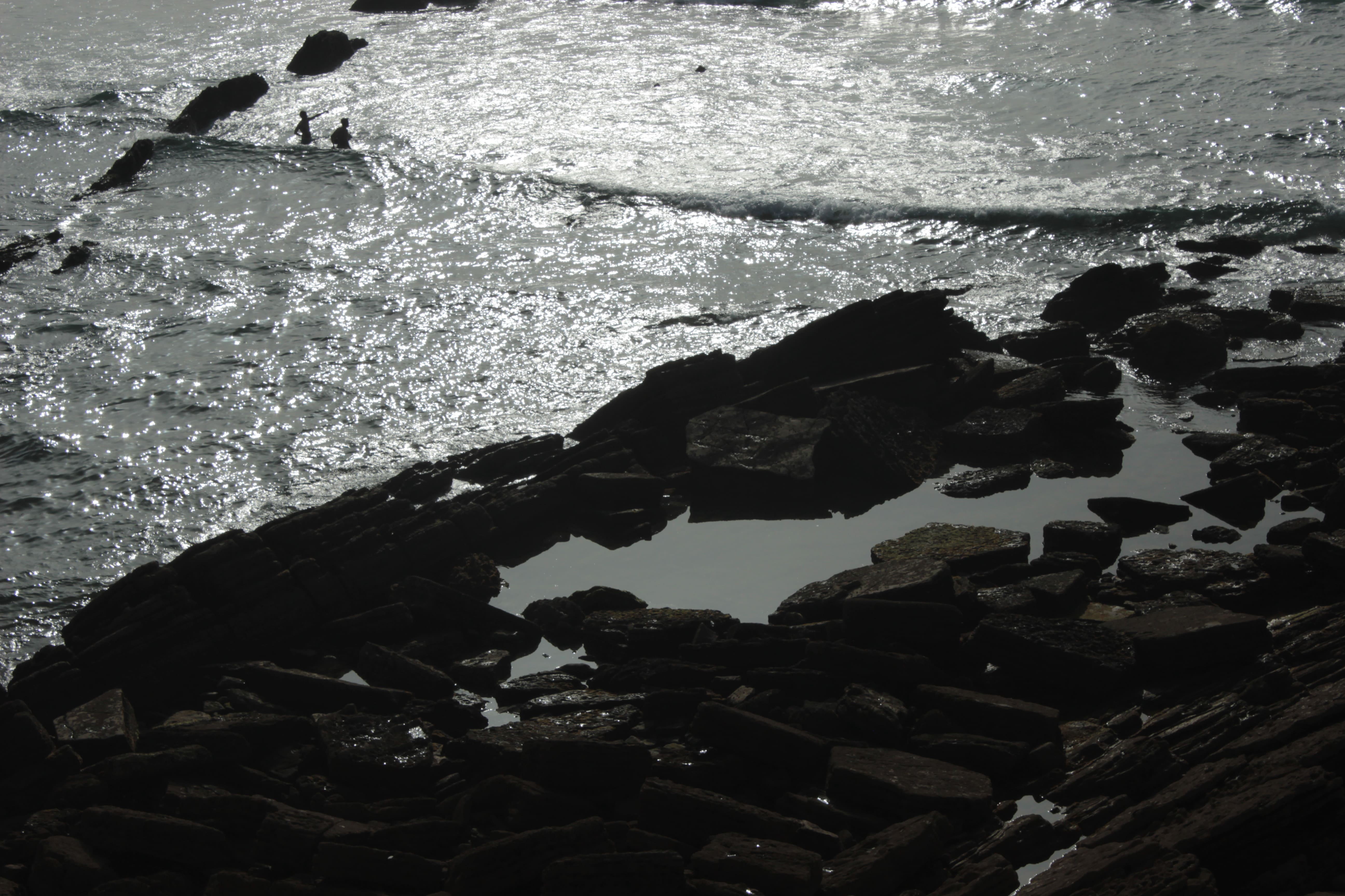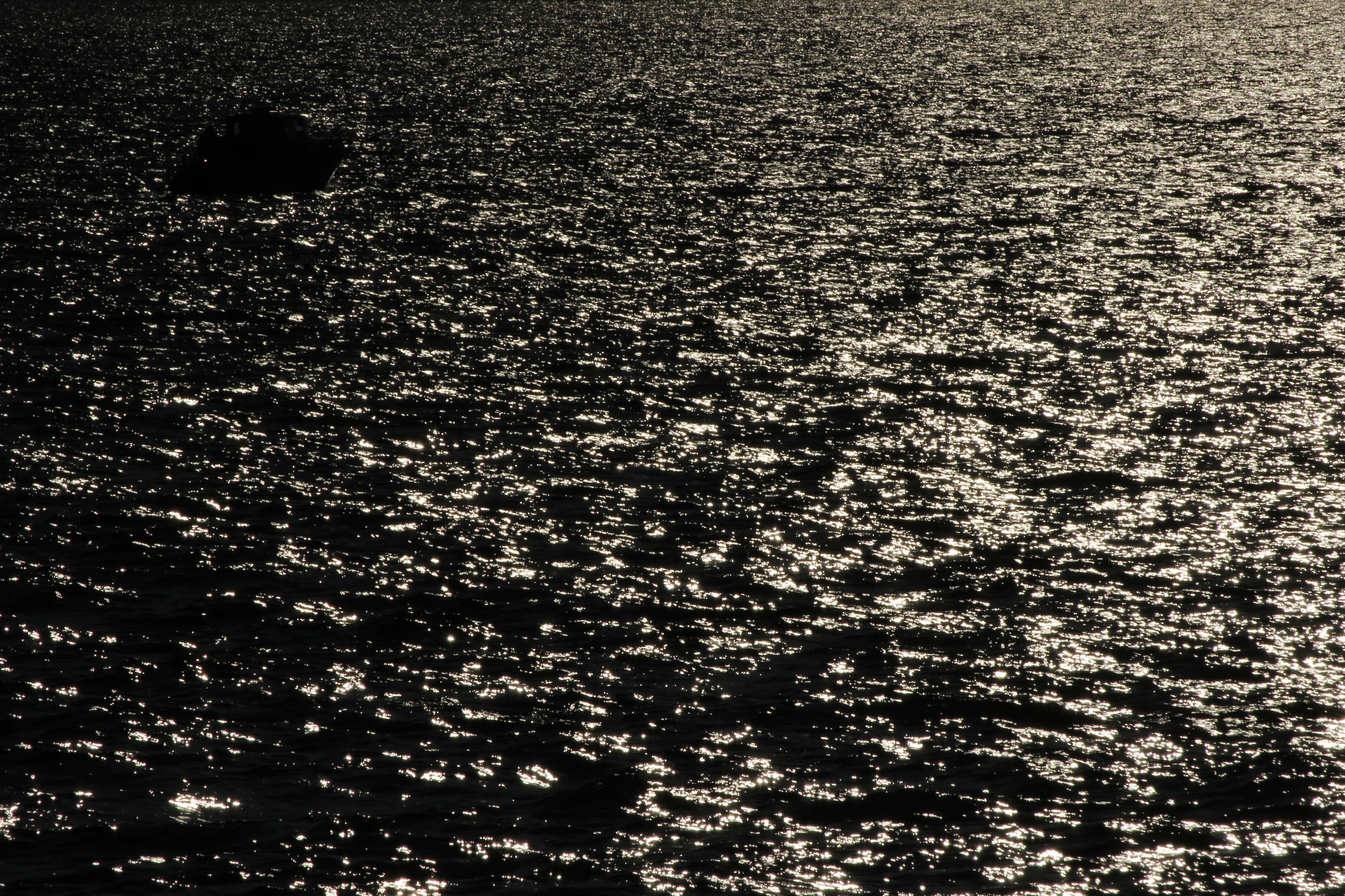 Tiempos de exposición tan rápidos y aperturas tan estrechas llevan a este paisaje... parece en blanco y negro, un relativamente calmado océano iluminado por la ténue luz de la luna...